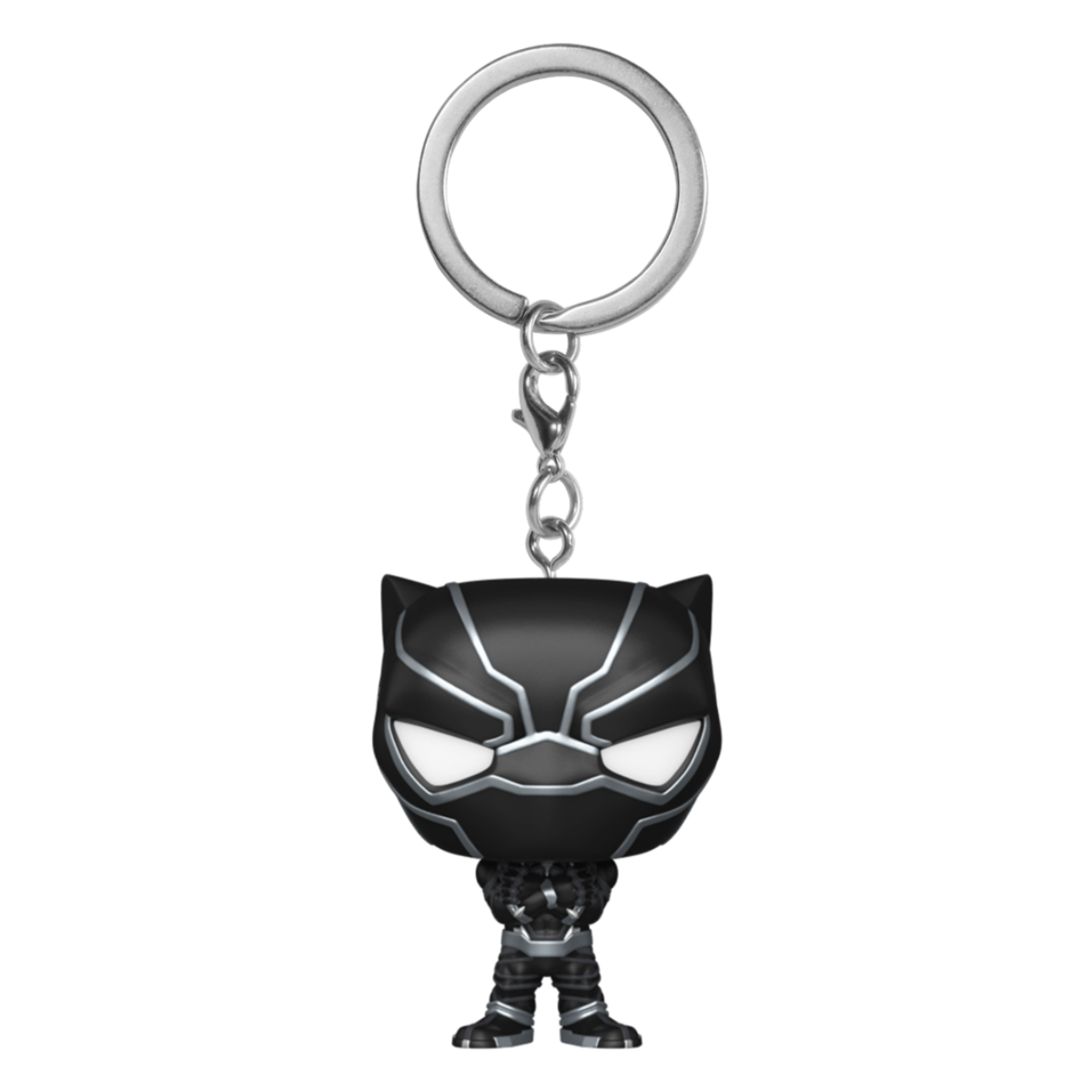 • Funko POP Keychain Marvel Black Panther met iconisch zwart-zilveren harnas