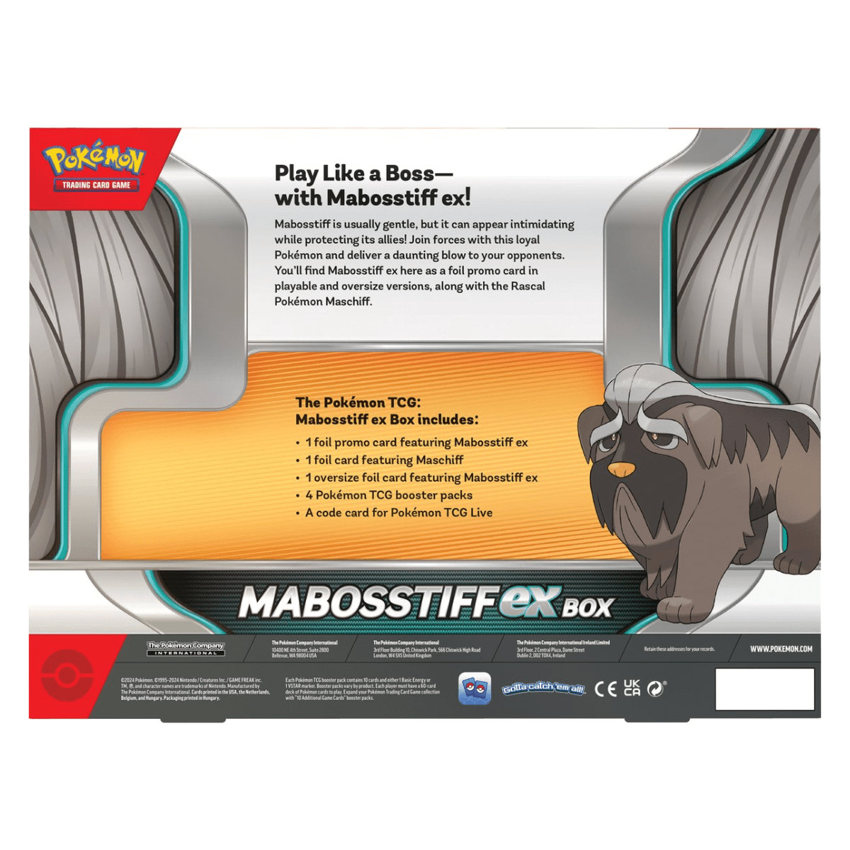 Mabosstiff is een Pokémon met een stoer uiterlijk en dat past goed bij het idee van een EX box die een beetje power uitstraalt. De box is vooral interessant als je houdt van een product waar je niet alleen losse packs koopt, maar ook een duidelijke hoofdkaart hebt die het thema draagt. Dat is fijn voor verzamelaars, want je kunt de promo direct een eigen plek geven, en het is ook fijn voor spelers omdat je meteen een duidelijke bouwsteen hebt om omheen te bouwen.