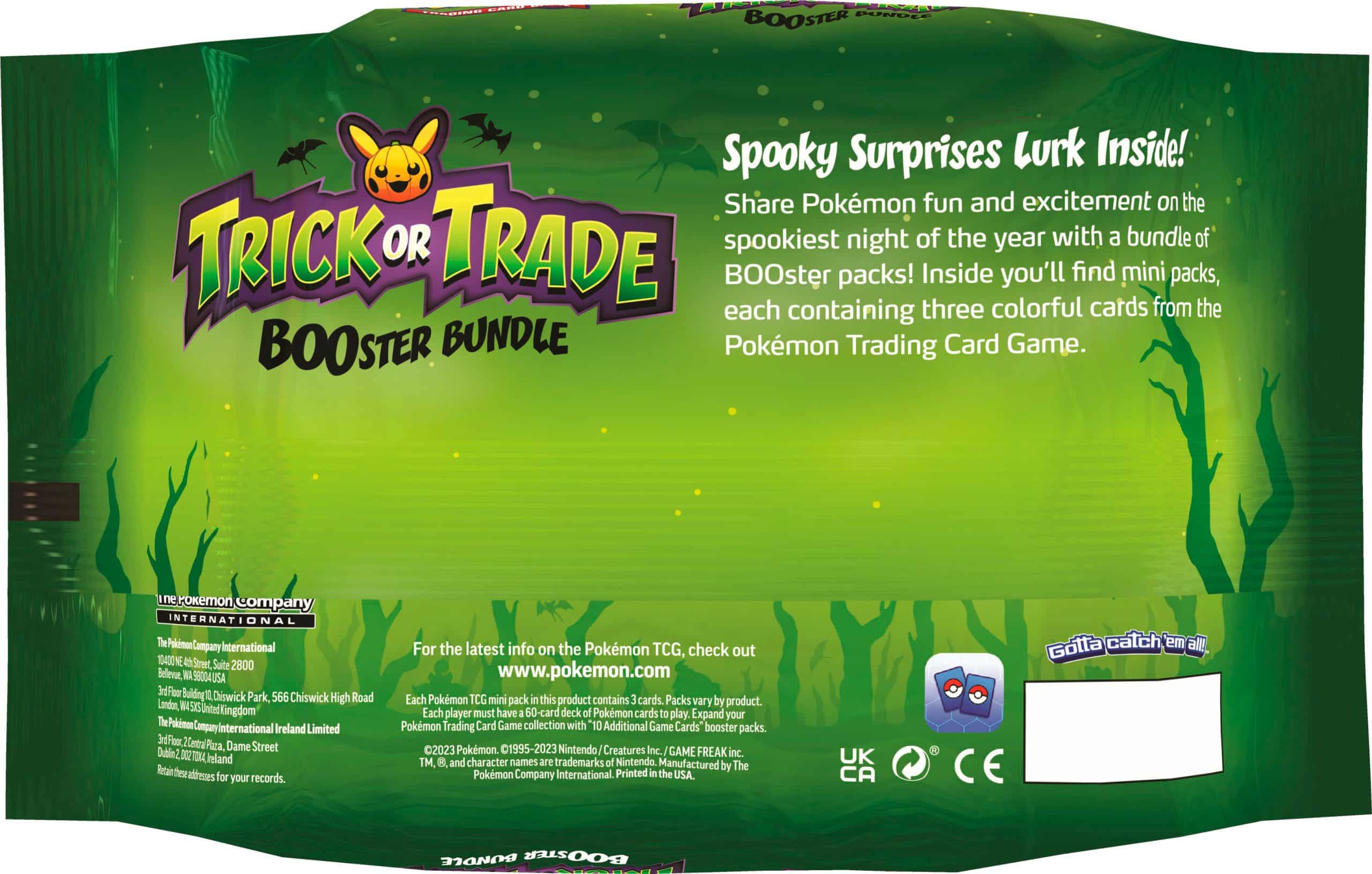 De Trick or Trade BOOster Pack zit boordevol leuke verrassingen voor trick-or-treaters. Ervaar een magische combinatie van Pokémon en de opwindende sfeer van Halloween, die langer meegaat dan snoep. De Trick or Trade set van 2023 is een verzameling kaarten in het Pokémon Trading Card Game, uitgebracht op 1 september 2023.